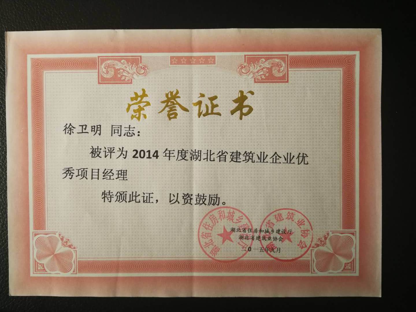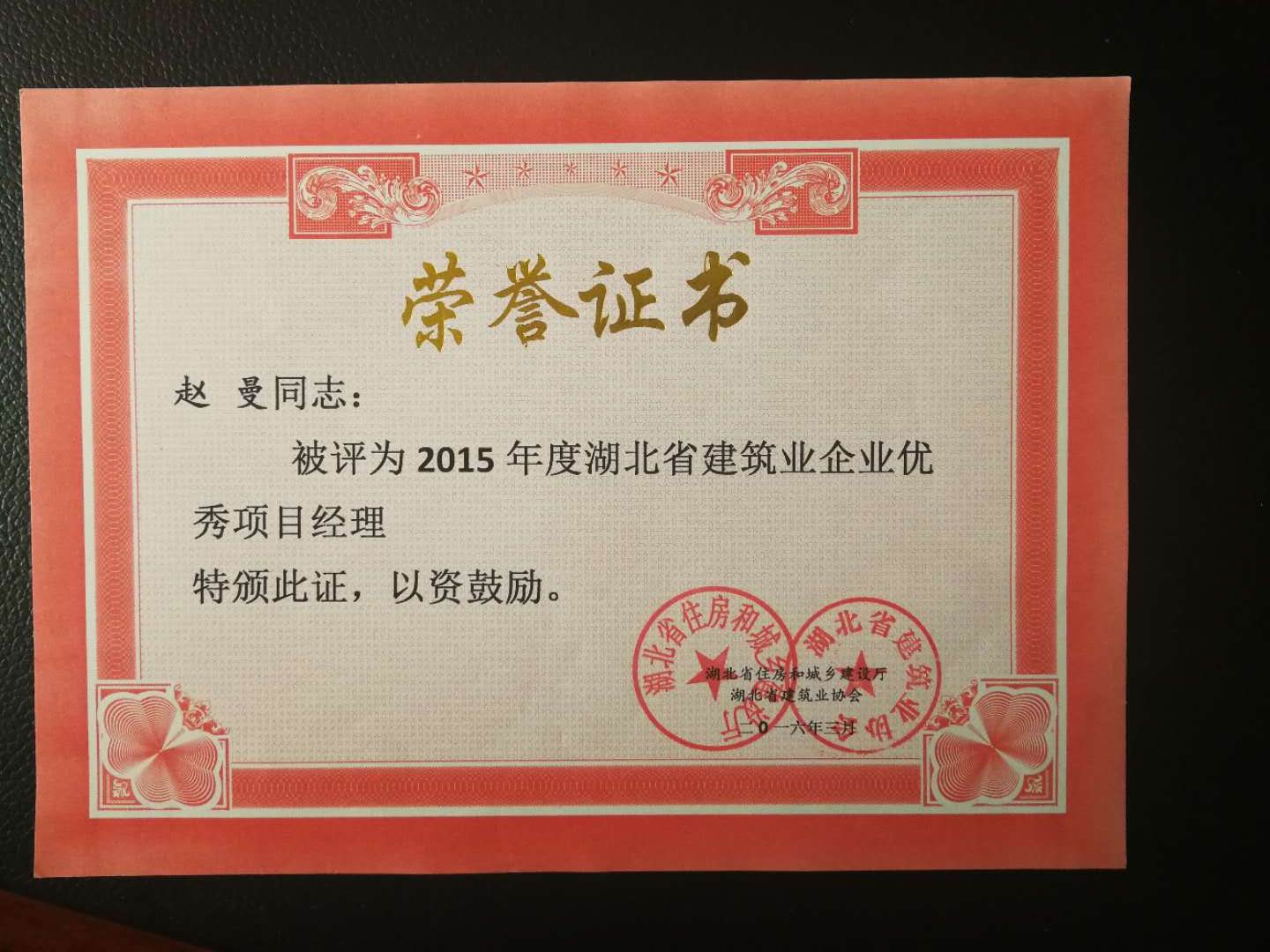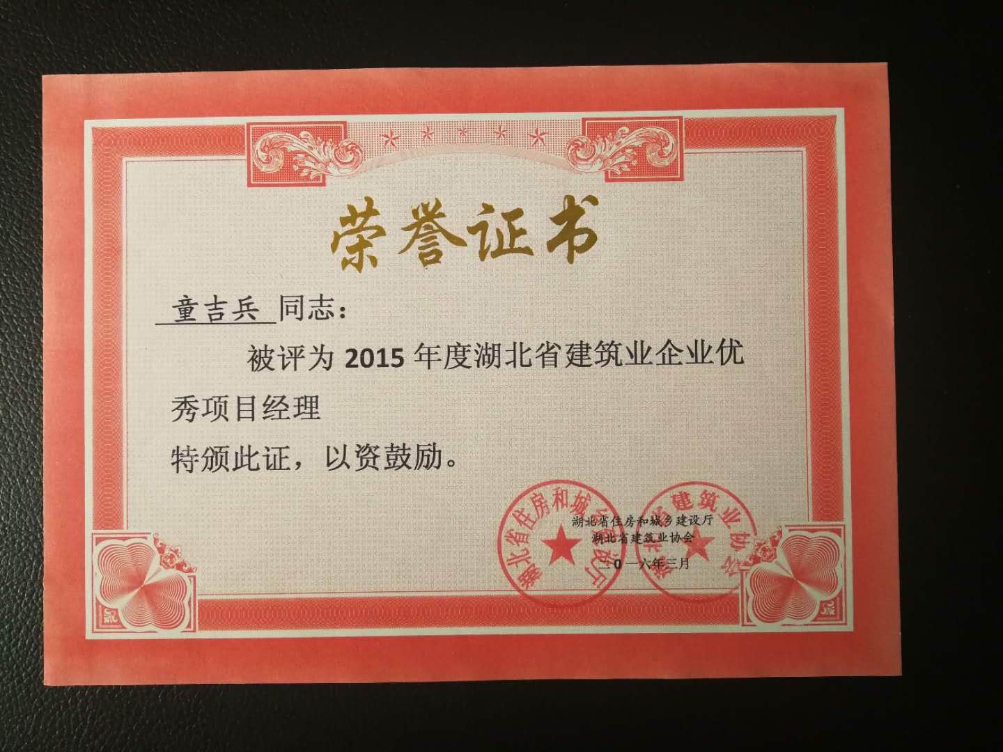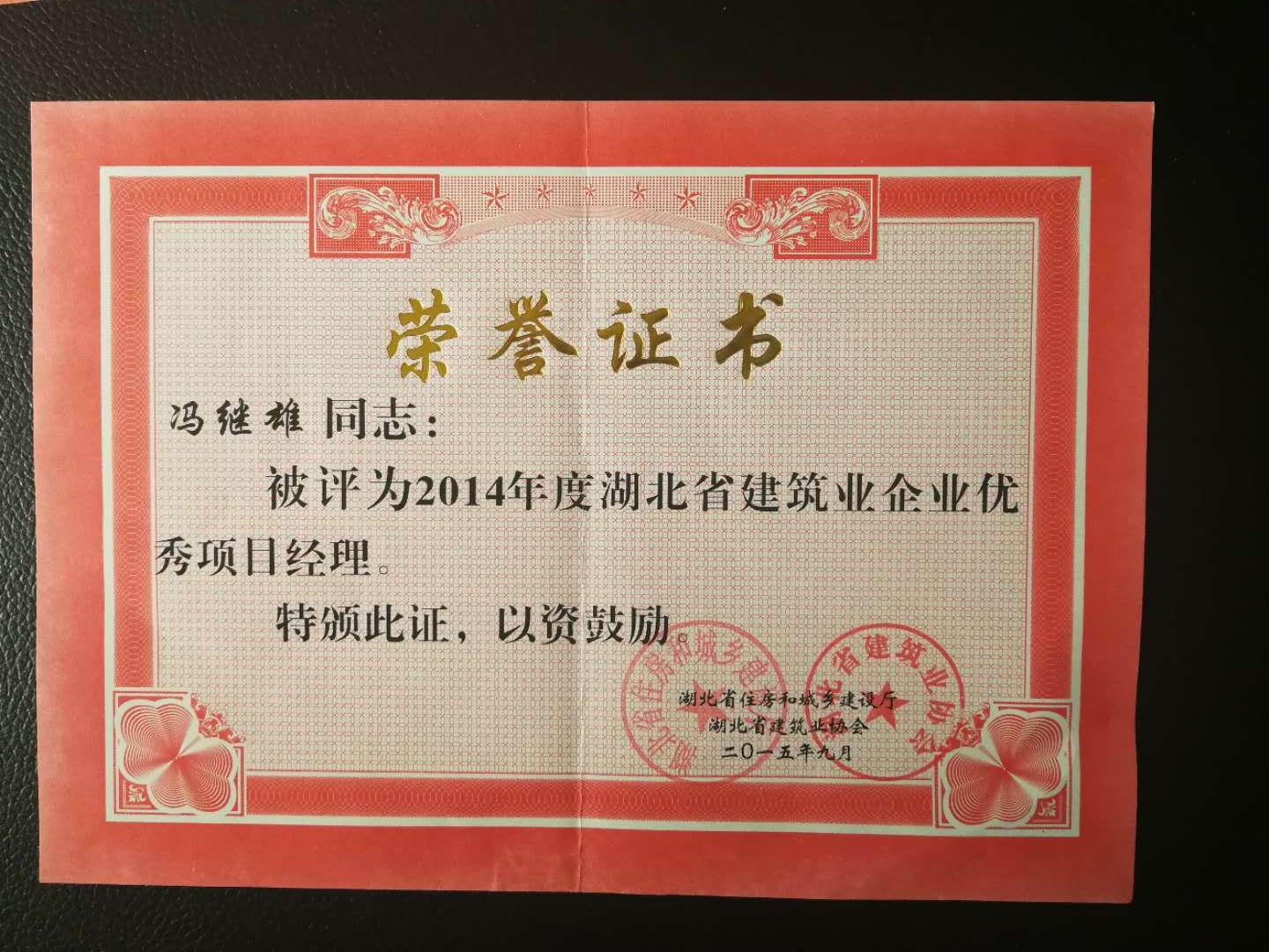 2015年度湖北省建筑業(yè)企業(yè)優(yōu)秀項目經(jīng)理