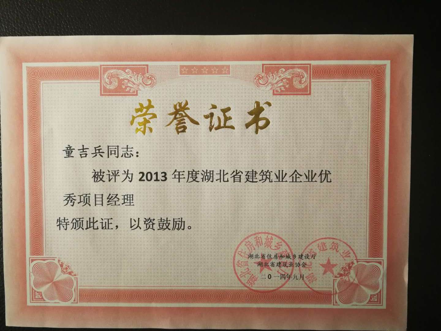2013年度湖北省建筑業(yè)企業(yè)優(yōu)秀項目經(jīng)理