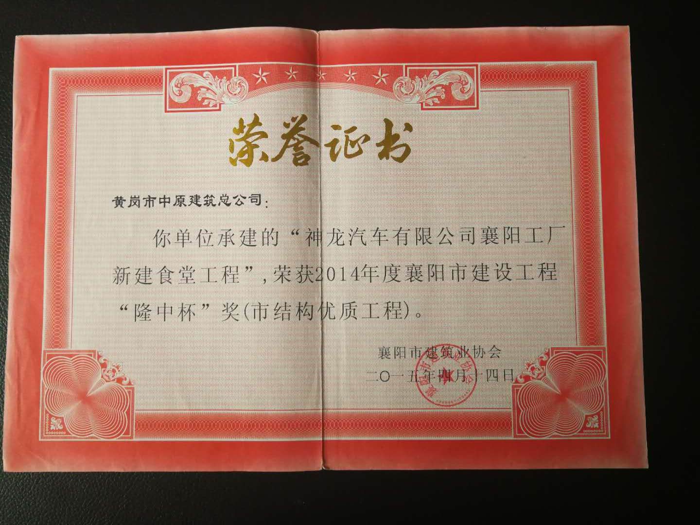 2014年度襄陽市建設(shè)工程“隆中杯”獎